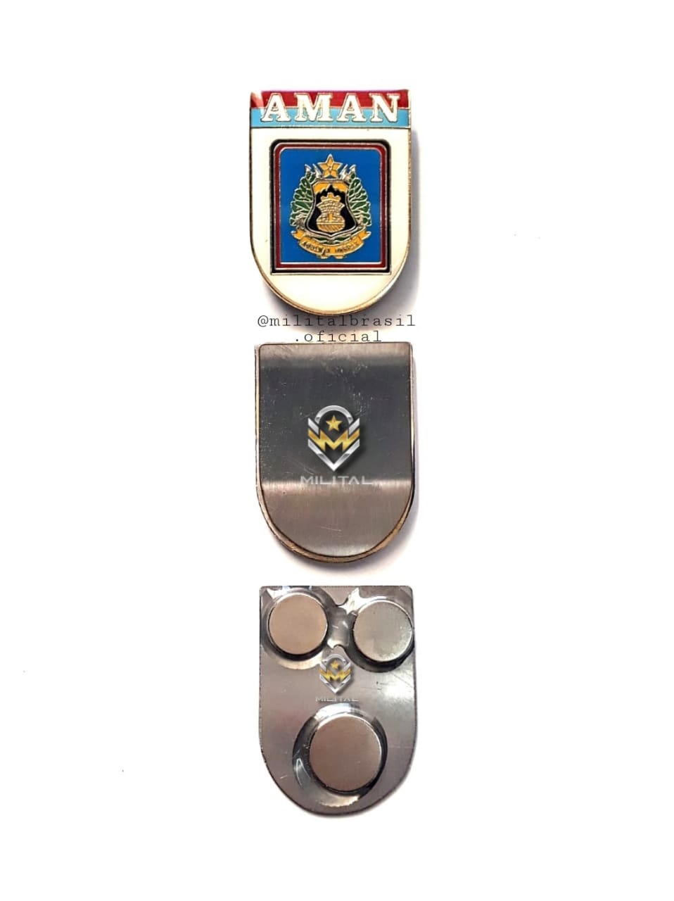 Brevê/Distintivo de Bolso Feminino da AMAN do EB, em metal com fixação por ímãs.