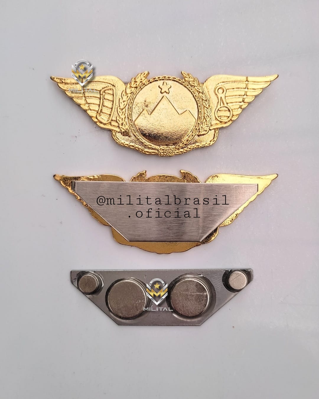 Brevê/Distintivo MONTANHA /Distintivo Curso Básico de Montanhismo EB, em metal dourado com fixação por super ímãs – entrega para todo o Brasil