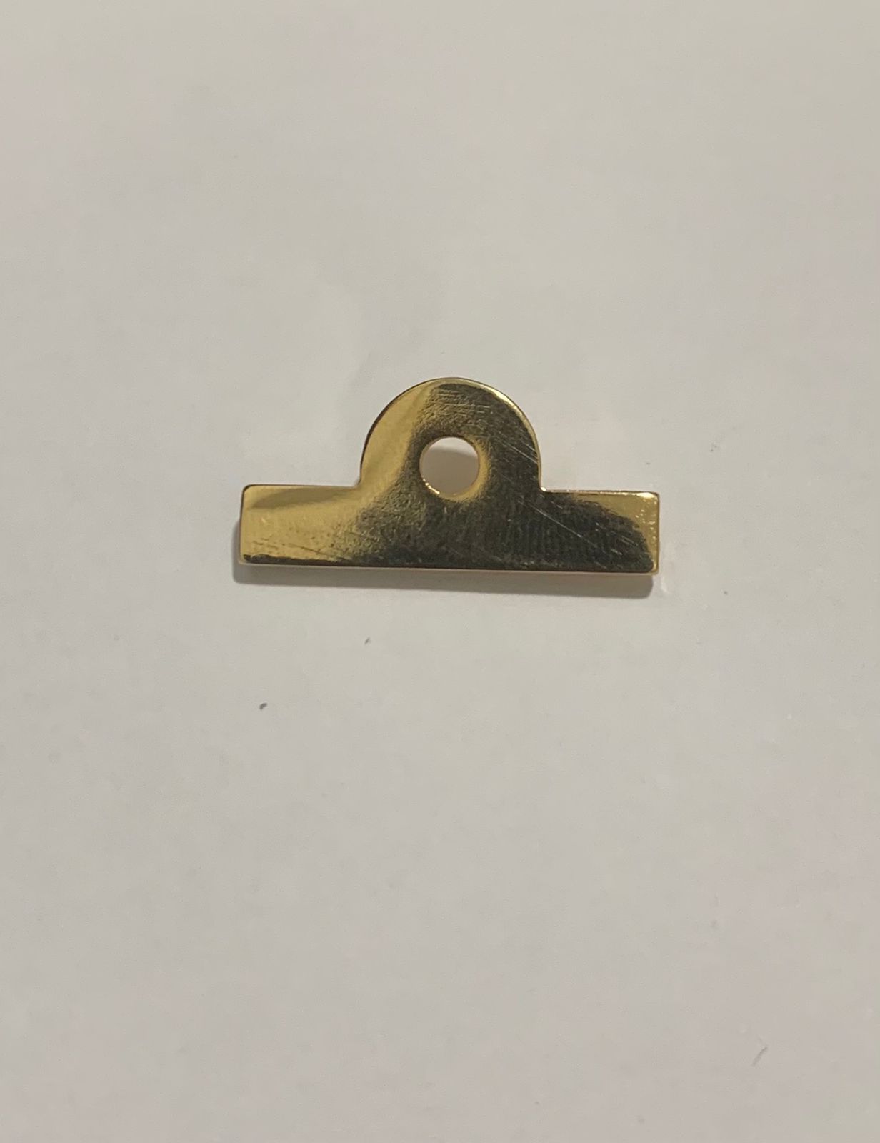 Insígnia em metal dourado com fixação por pinos.