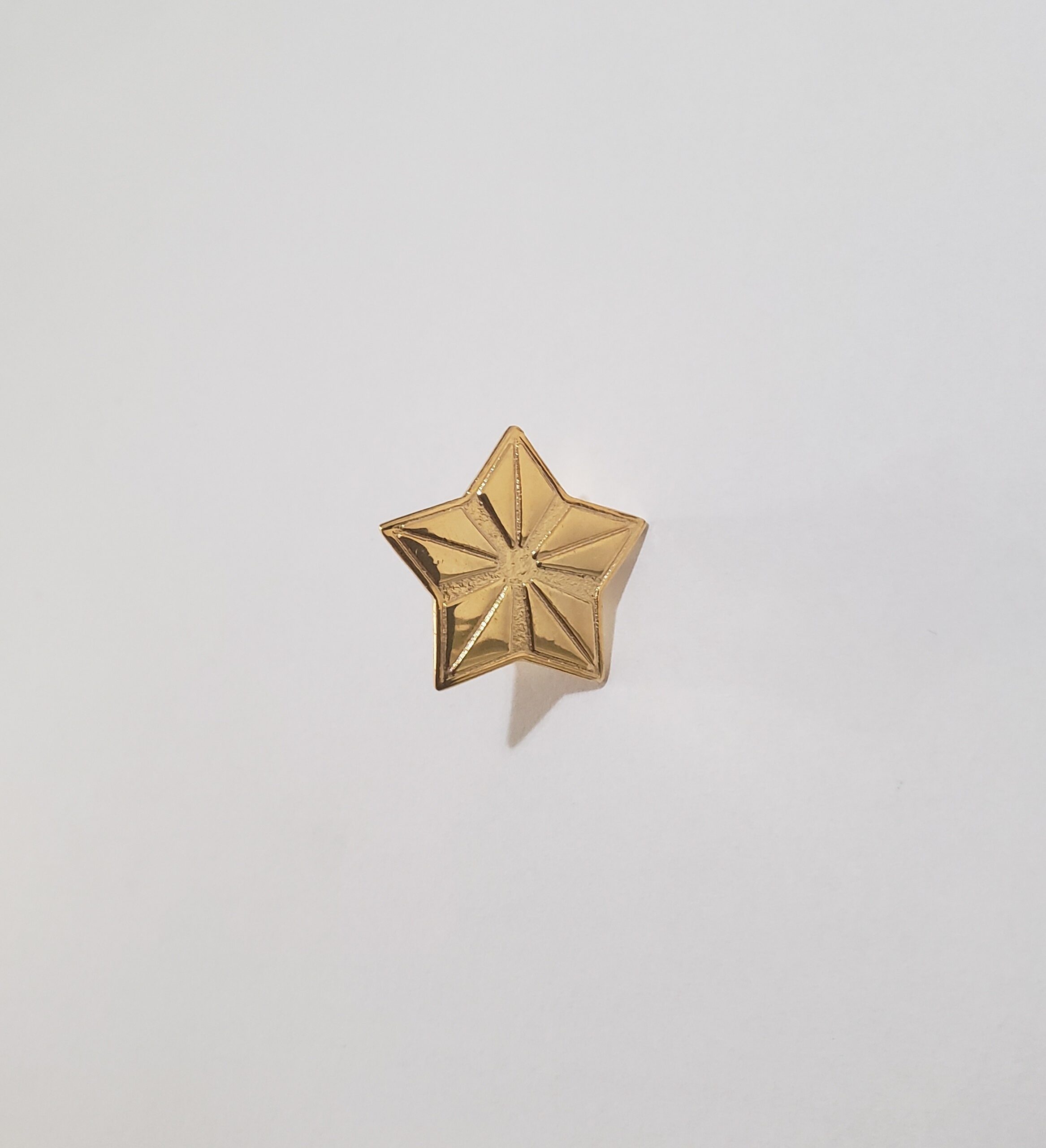 Insígnia em metal dourado com fixação por pinos.