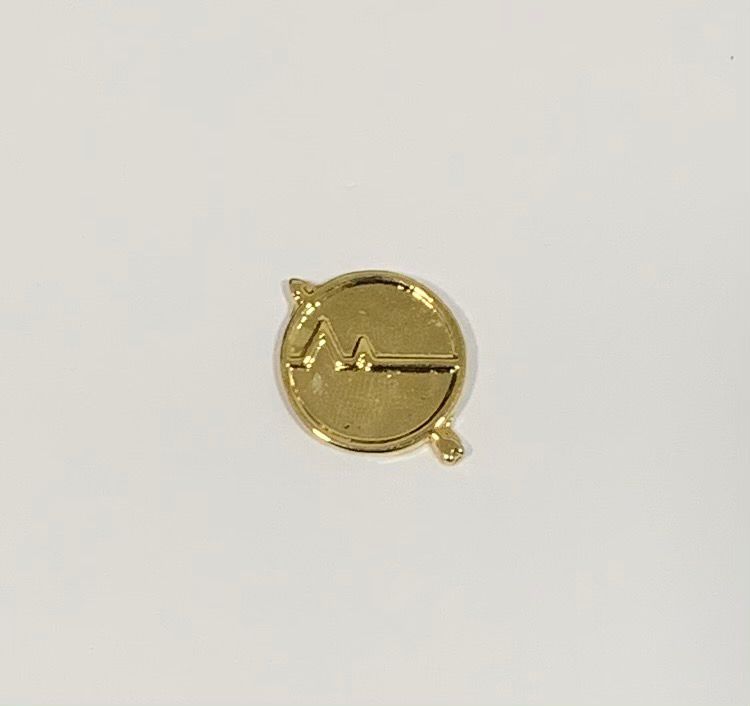 Insígnia em metal dourado com fixação por pinos.