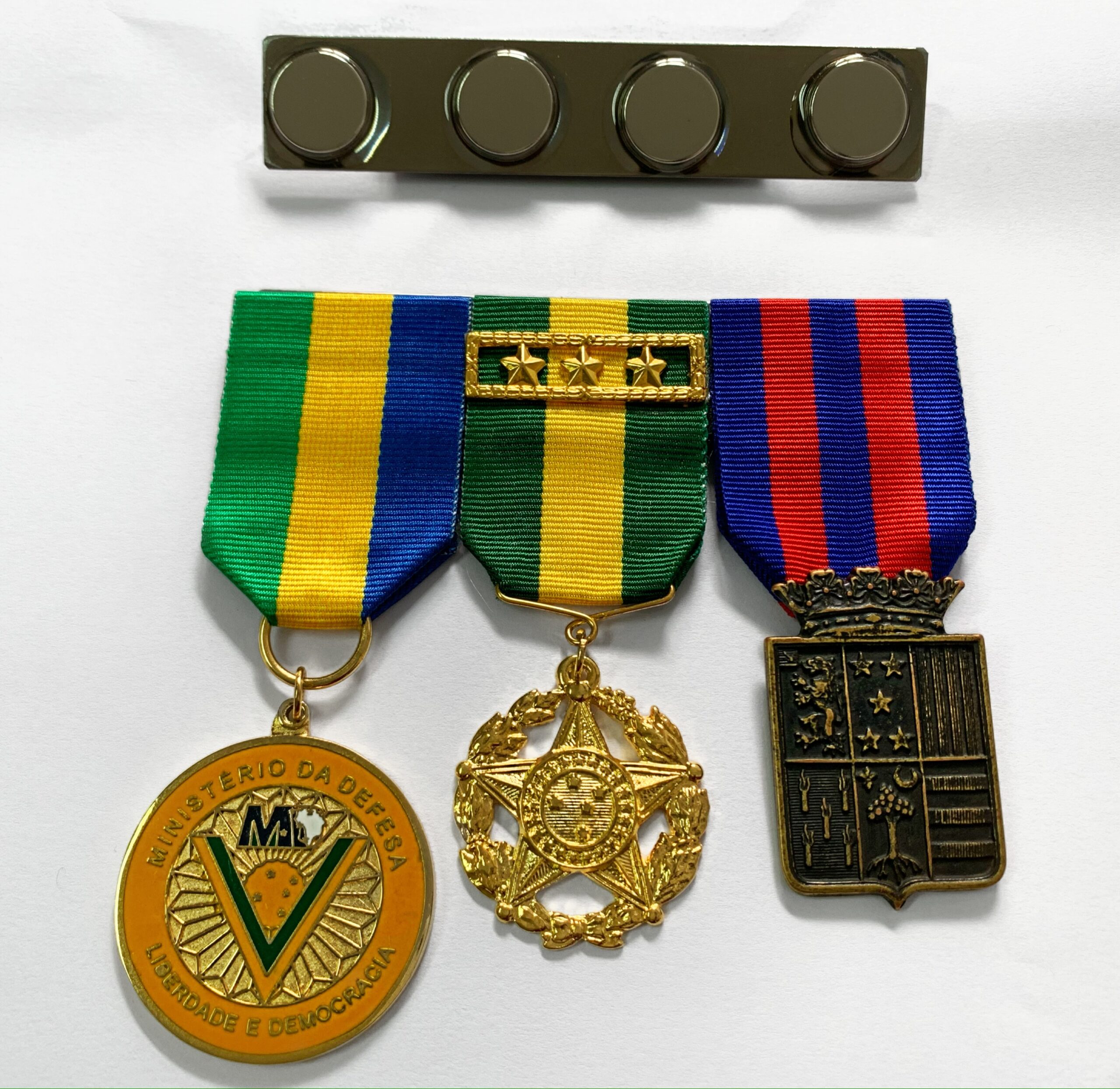 Junção de três medalhas em placa com fixação por imãs – dimensões: 105×105 , 86g